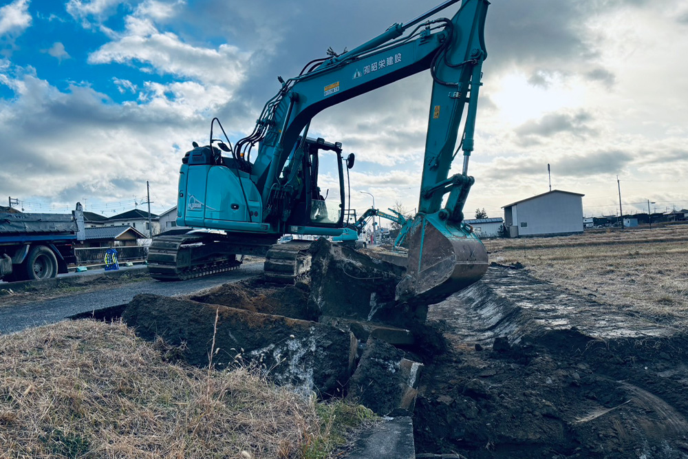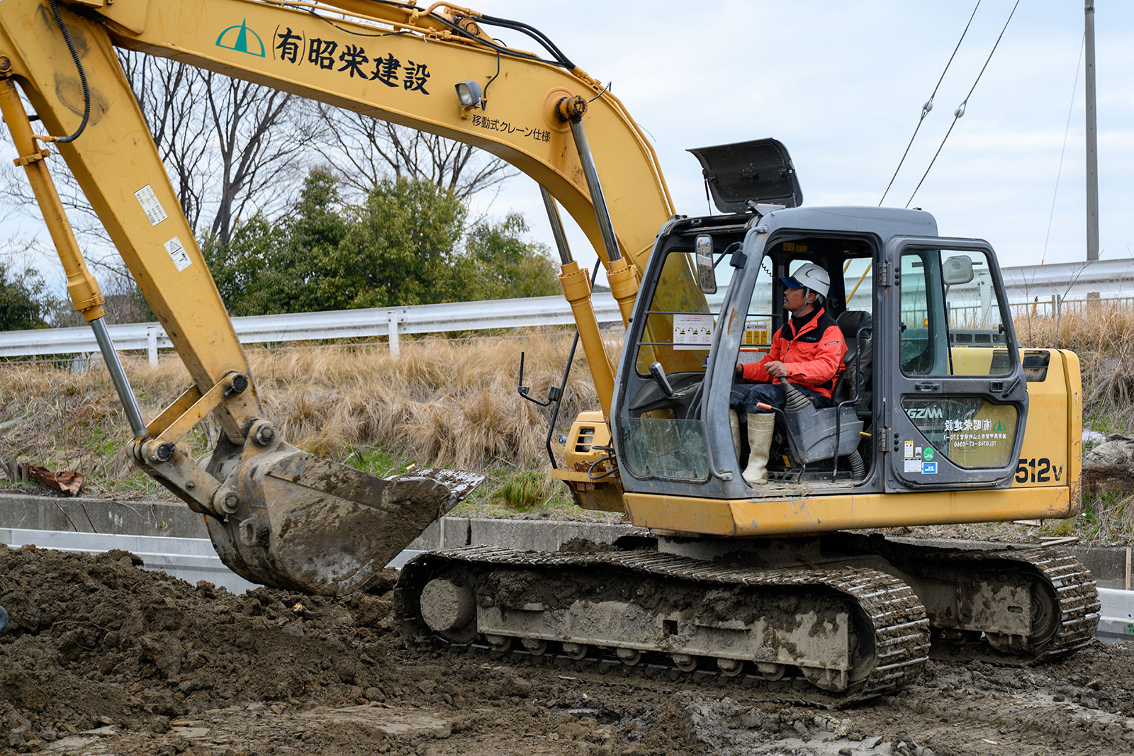 取り組んでいる業務は幅広く、工事を行うための測量・管理、道路の新設・補修・舗装、河川における浚渫・砂防ダムの施工、治山工事・上下水道の埋設工事・建物や構造物の解体工事などを行っています。